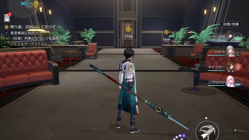 客室車両に向かう前に、今いる列車のラウンジを調べましょう。