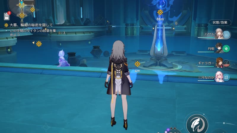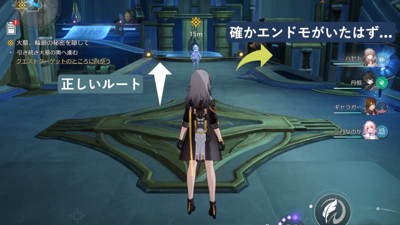 丹楓の記憶の景元たちの会話を聞いた後、目の前の「神座」で祈言を強化し、時間を巻き戻して上階に移動。再びクエストターゲットに沿って進みます。