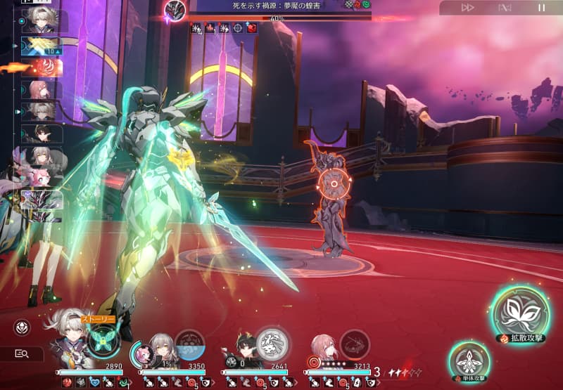 このボス戦は、【ヴェルト、なのか、姫子、丹恒】の固定パーティーによるイベント戦で、必ず勝てる仕様なので何も考えずに戦って大丈夫です。